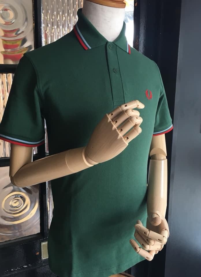 TWIN TIPPED FRED PERRY SHIRT M12 【TARTAN GREEN / ICE / RED】