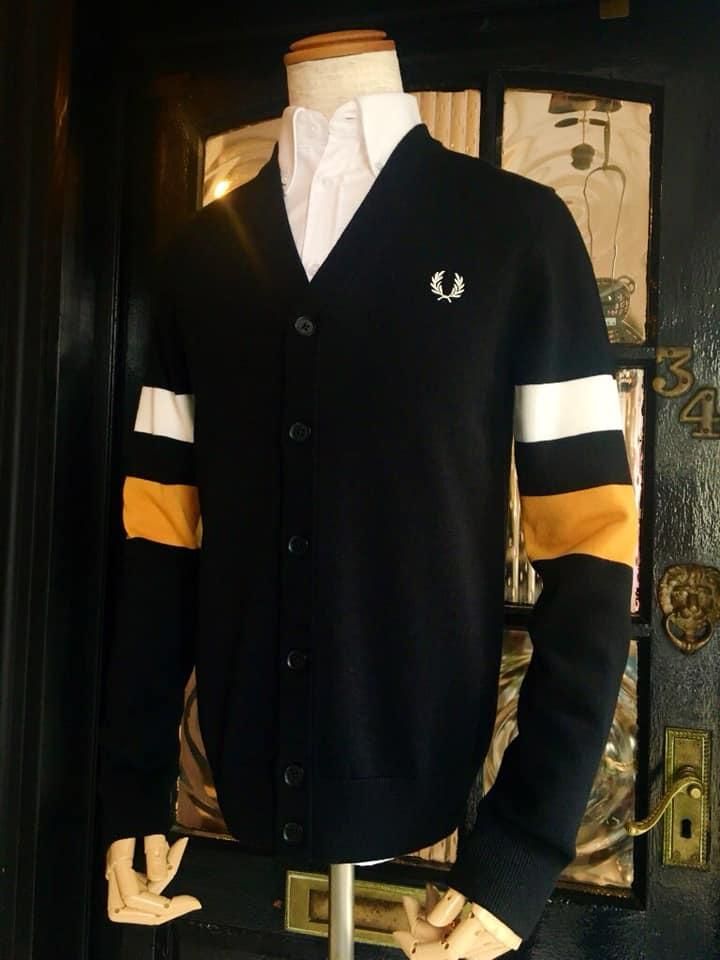スリーブ部分に大胆なティップラインをあしらったVネックカーディガン