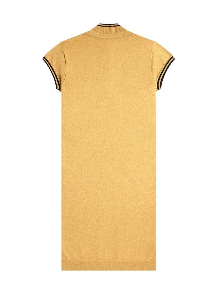 シャリ感のあるゴールドのラメ糸で作られたニットポロワンピース。