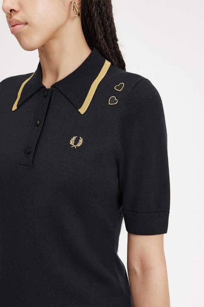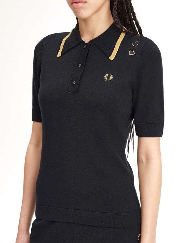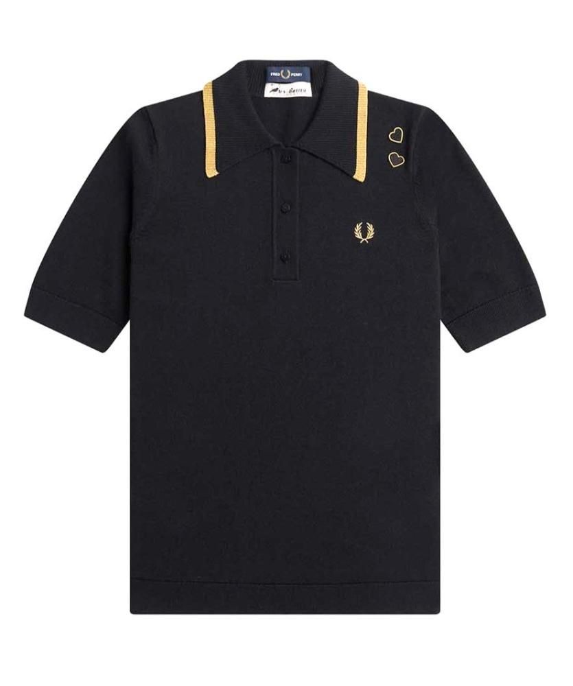 エイミーのシグニチャーであるラブハートを2つあしらったニットポロシャツ。