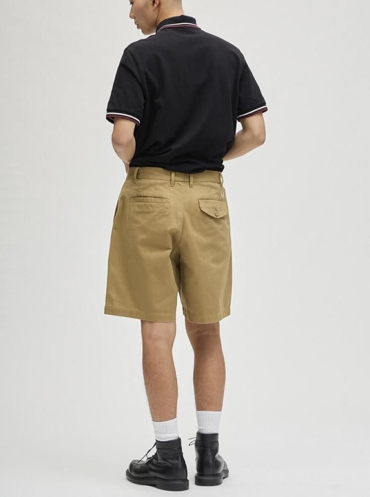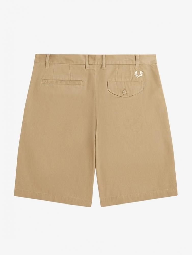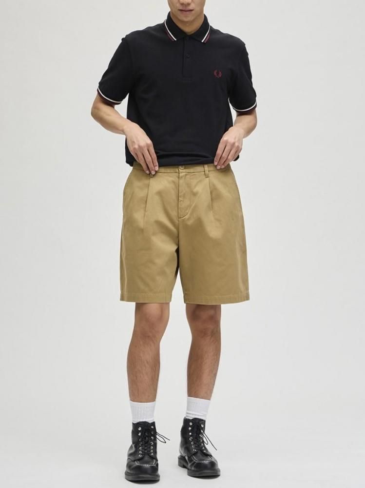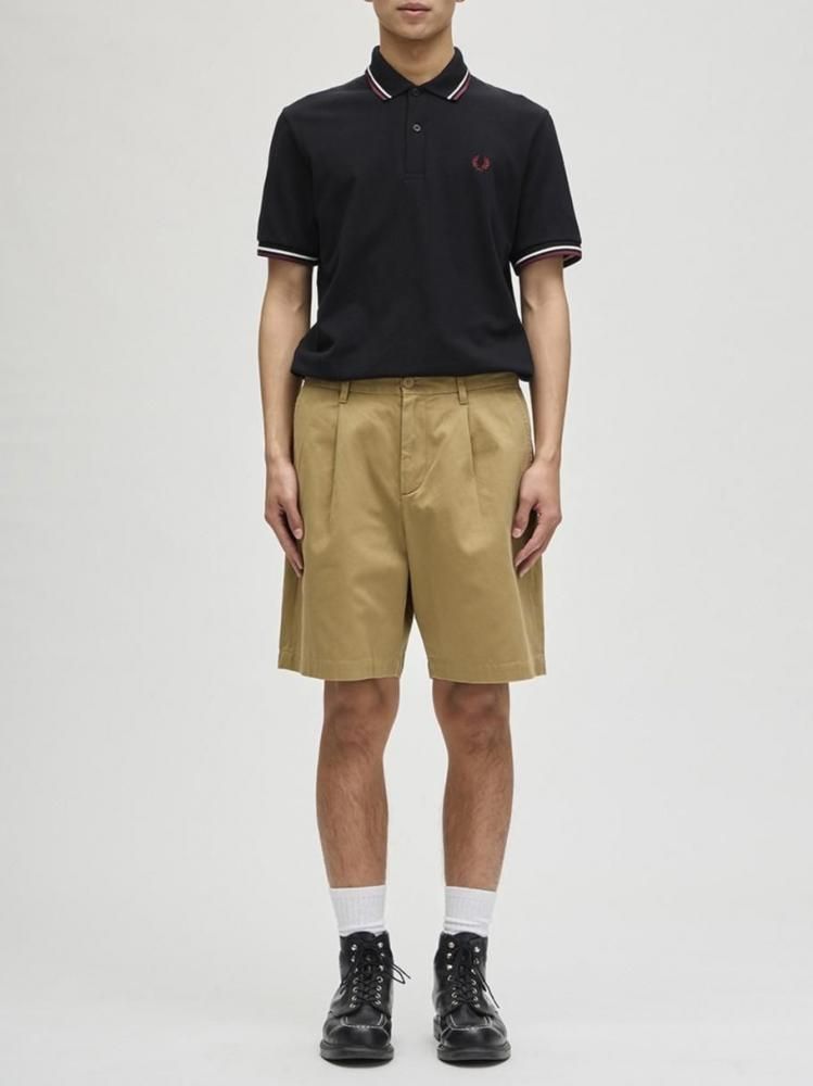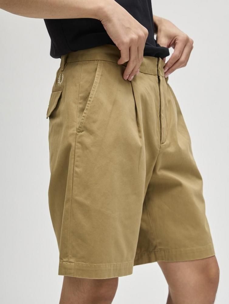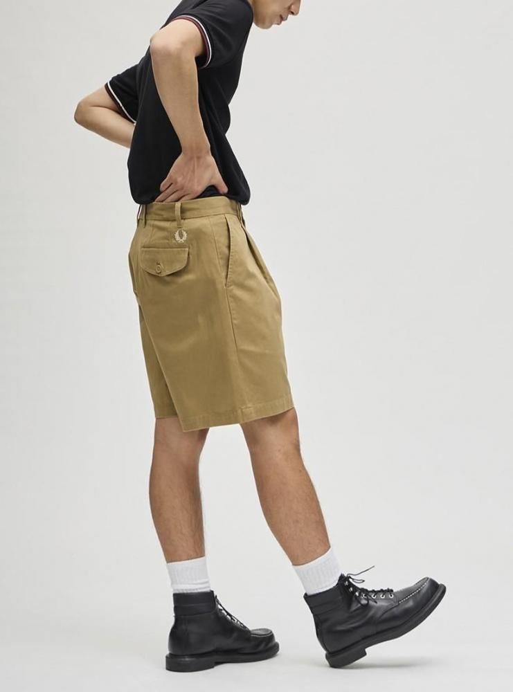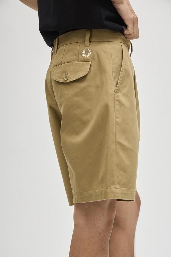 Fred Perry☆Long Pleated Shorts【WARM STONE】☆英国直輸入ピンバッジプレゼント