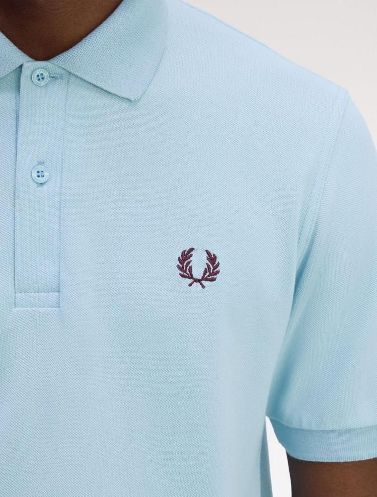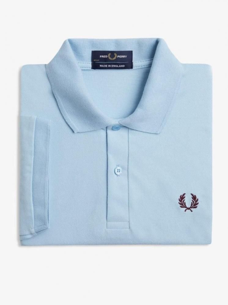 英国製☆The Fred Perry Shirt - M3【Mineral Blue / Maroon】☆英国直輸入ピンバッジプレゼント