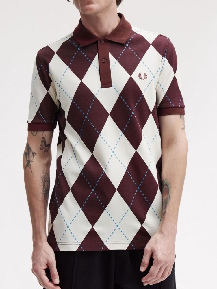 国内希少モデル☆The Fred Perry☆Argyle Print Polo Shirt 【Ecru】☆英国直輸入ピンバッジプレゼント
