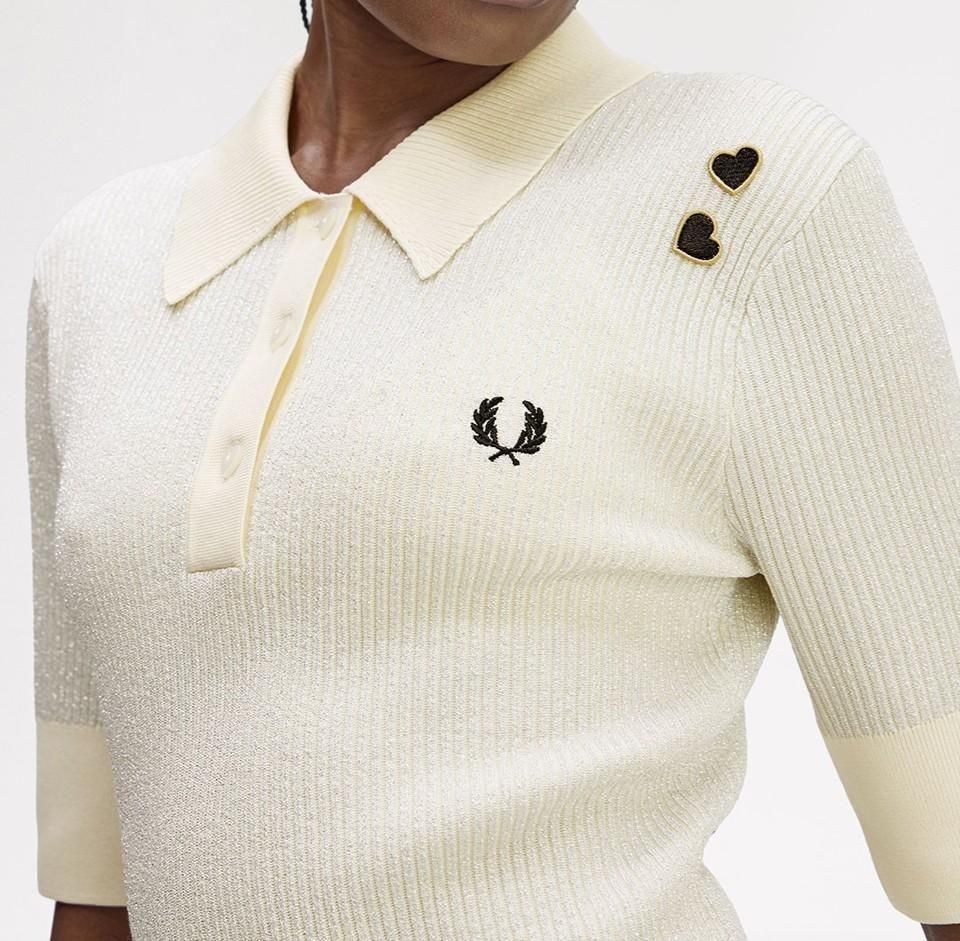 WOMENS★Amy Winehouse Metallic Rib Knit Polo Shirt☆英国直輸入ピンバッジプレゼント