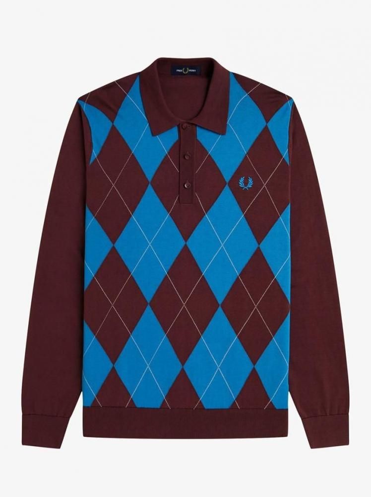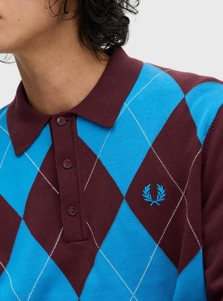 Sサイズのみ☆The Fred Perry☆Argyle Long Sleeve Knitted Polo Shirt☆英国直輸入ピンバッジプレゼント